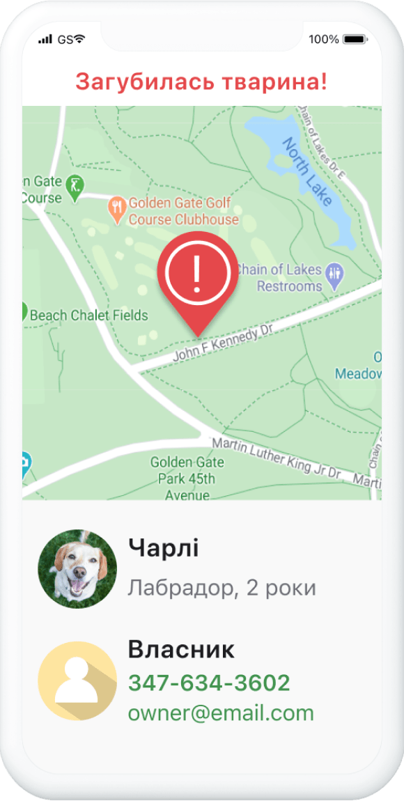 Екстрене сповіщення інших користувачів Animal ID поблизу тебе, якщо тварина загубилась